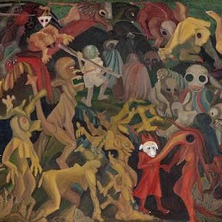 The exhibition features a group of artists from different generations who vary in backgrounds, as well as in the themes and forms of their art. They represent 50 years of east African art – from 1950 to 2000. They are: Sam Joseph Ntiro (1923-1990), Elimo Njau (1932-), Asaph Ng’ethe Macua (1930-), Jak Katarikawe (1940-2018), Theresa Musoke (1942-), Peter Mulindwa (1943-), Sane Wadu (1954-), John Njenga (1966-1997), Chelenge van Rampelberg (1961-) and Meek Gichugu (1968-).